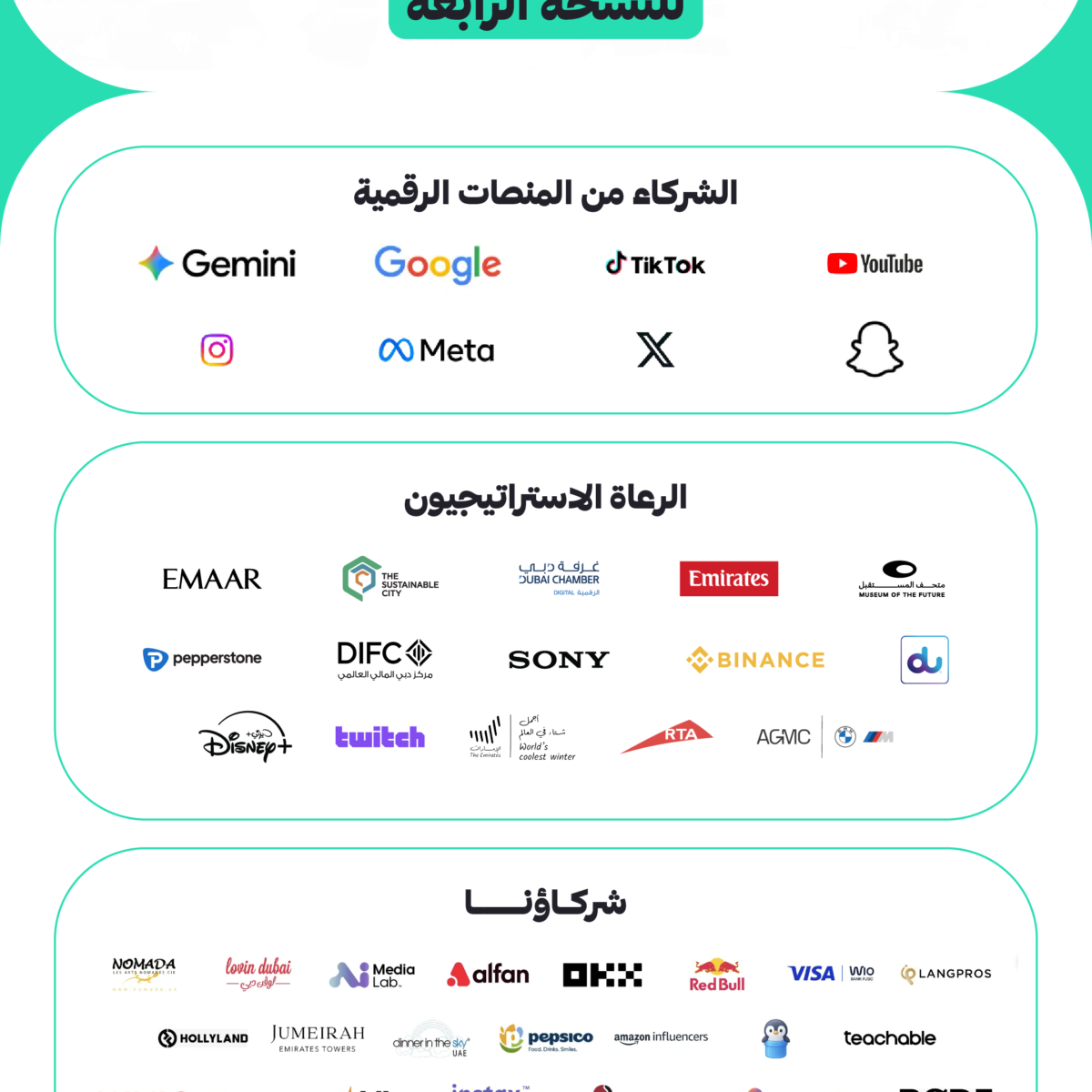 The summit’s partners also include Google and Gemini, in addition to the world’s leading social media platforms, all coming together in the UAE under one roof: Snapchat, X, YouTube, TikTok, LinkedIn, and Meta (Facebook and Instagram).