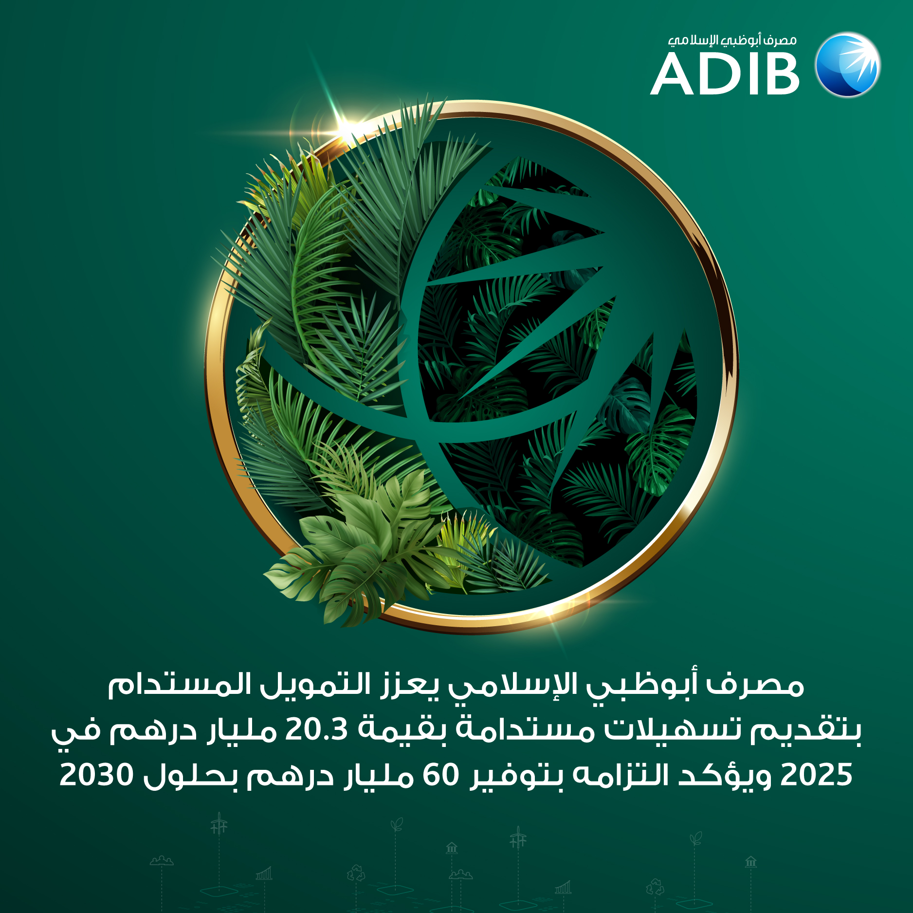 ABU DHABI, 6th April, 2026 (WAM) — Abu Dhabi Islamic Bank (ADIB) has announced that it mobilised and facilitated AED 20.3 billion in sustainable finance by the end of 2025, marking a strong year of execution and reinforcing its commitment to deploy AED 60 billion in sustainable finance by 2030.