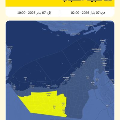 ABU DHABI, 7th January, 2026 (WAM) — The National Centre of Meteorology (NCM) has issued a weather advisory warning of potential fog formation across some