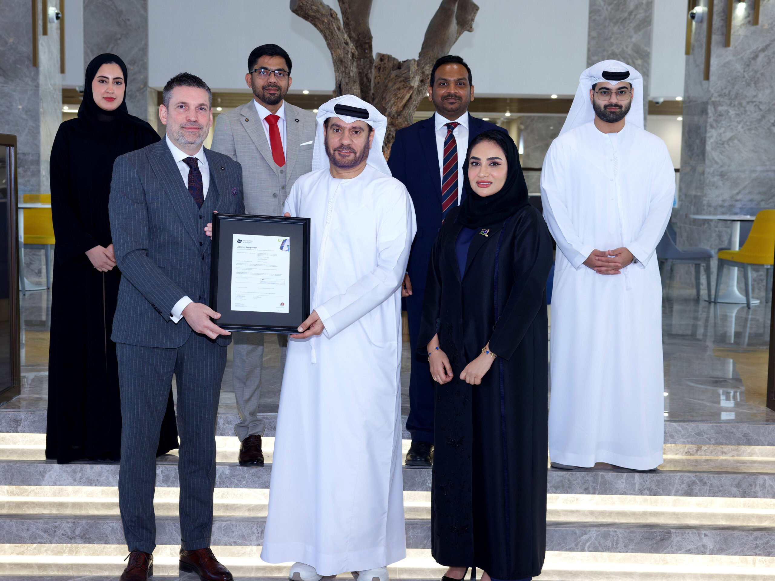 The certificate was received by Ibraheem Al Sayed Mohamed Al Hashemi, Assistant Governor for Executive Office and Secretary General of the Board of Directors at CBUAE, from representatives of the British Standards Institution, marking this institutional achievement.