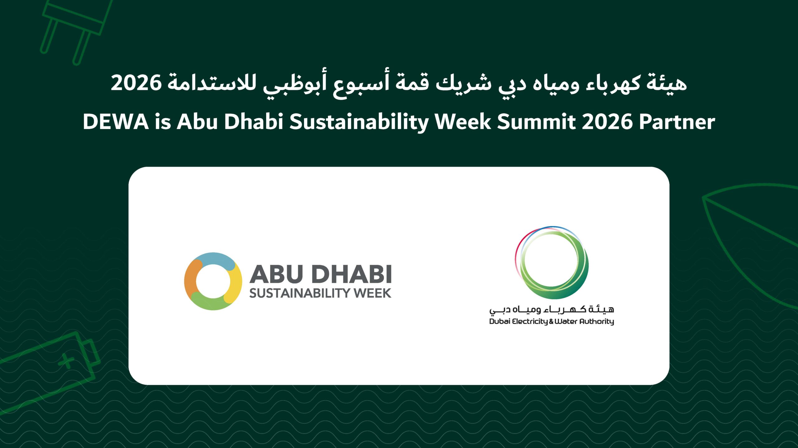 DUBAI, 9th January, 2026 (WAM) — Dubai Electricity and Water Authority (DEWA) will participate as a partner of the Abu Dhabi Sustainability Week Summit 2026, which will be held on 13th-14th January 2026 at the Abu Dhabi National Exhibition Centre (ADNEC).
