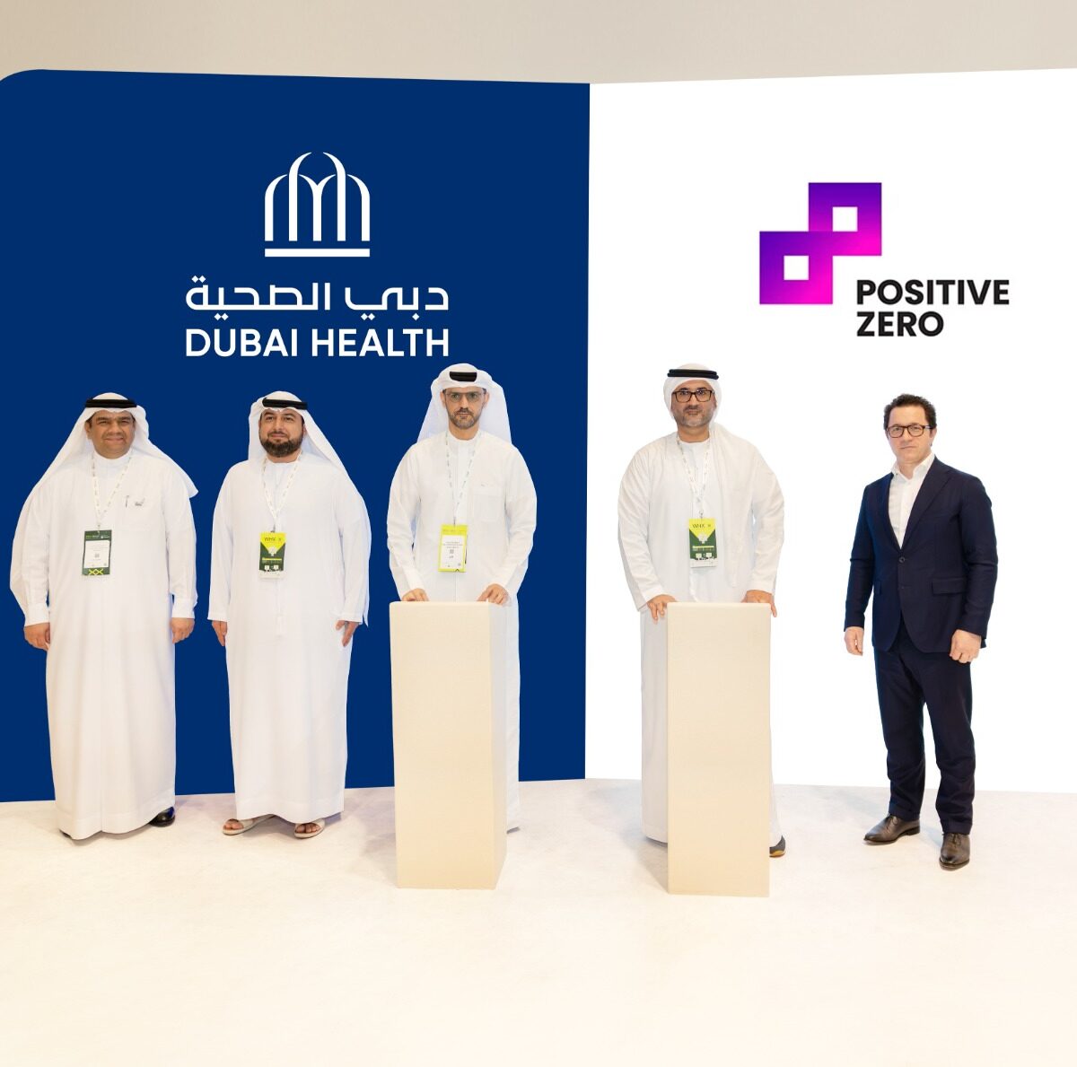 The collaboration was marked with representatives including Dr. Amer Sharif, CEO of Dubai Health, Khalifa Baqer, Chief Operating Officer of Dubai Health; Dr. Amer Al Zarooni, CEO of Al Jalila Foundation; Mohammed Abdulghaffar Hussain, Chairman of Positive Zero; and David Auriau, CEO of Positive Zero.