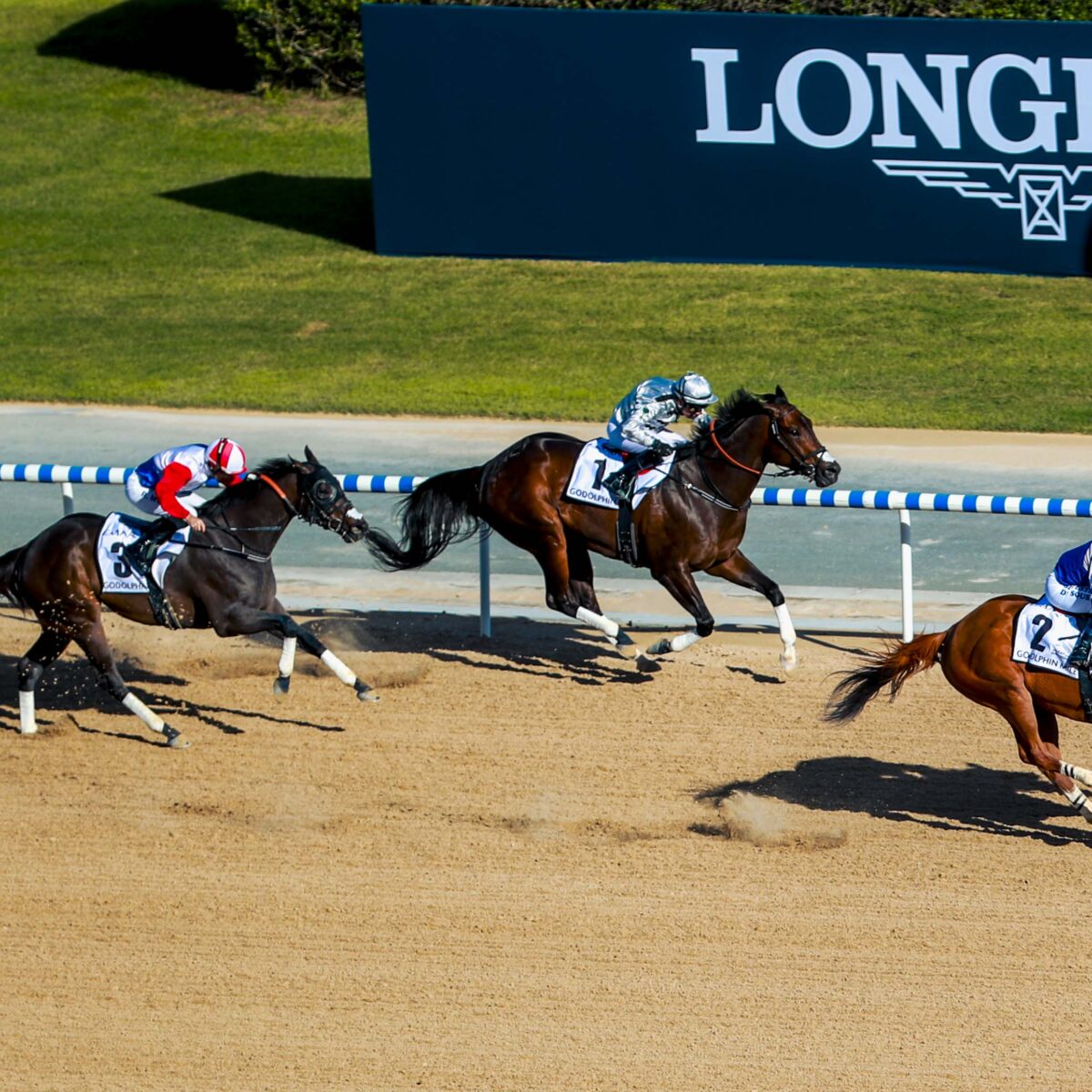 De Sousa said: “My horse was coming back in trip and it suits him, he’s a proper miler. There was a lot of pace in the race and I just held the horse where he wanted to be. He took the turn a bit wrong, with the wrong leg, but he responded well under pressure.