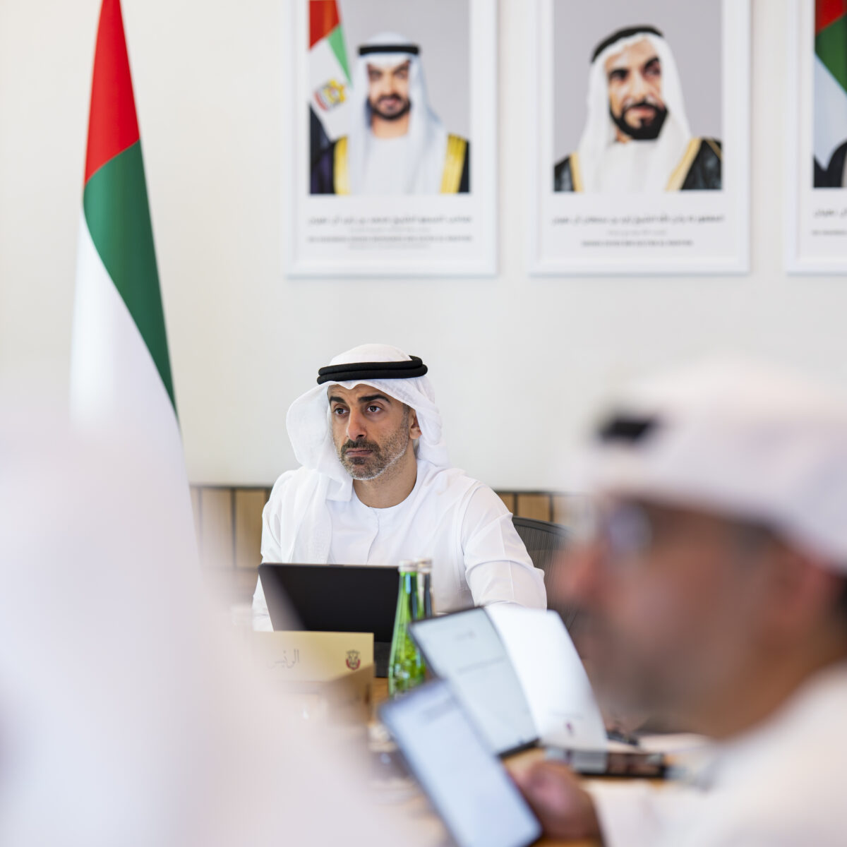 The meeting was attended by H.H. Sheikh Zayed bin Mohamed bin Zayed Al Nahyan; Sheikh Hamdan bin Saeed bin Tahnoon Al Nahyan; Faisal Abdulaziz Al Bannai, Advisor to the UAE President for Strategic Research and Advanced Technology Affairs; Mohamed Ali Al Shorafa, Chairman of the Department of Municipalities and Transport; Ahmed Jasim Al Zaabi, Chairman of Abu Dhabi Department of Economic Development; Major General Ahmed Saif bin Zaitoon Al Muhairi, Commander-in-Chief of Abu Dhabi Police; Sultan Al Mutawa Al Dhaheri, Office Director of the Deputy Chairman of the Presidential Court for Special Affairs; Badr Saleem Sultan Al-Olama, Director-General of Abu Dhabi Investment Office; and Mouza Eissa Al Ali, Operations and Development Director at the Office of the Deputy Chairman of the Presidential Court for Special Affairs.