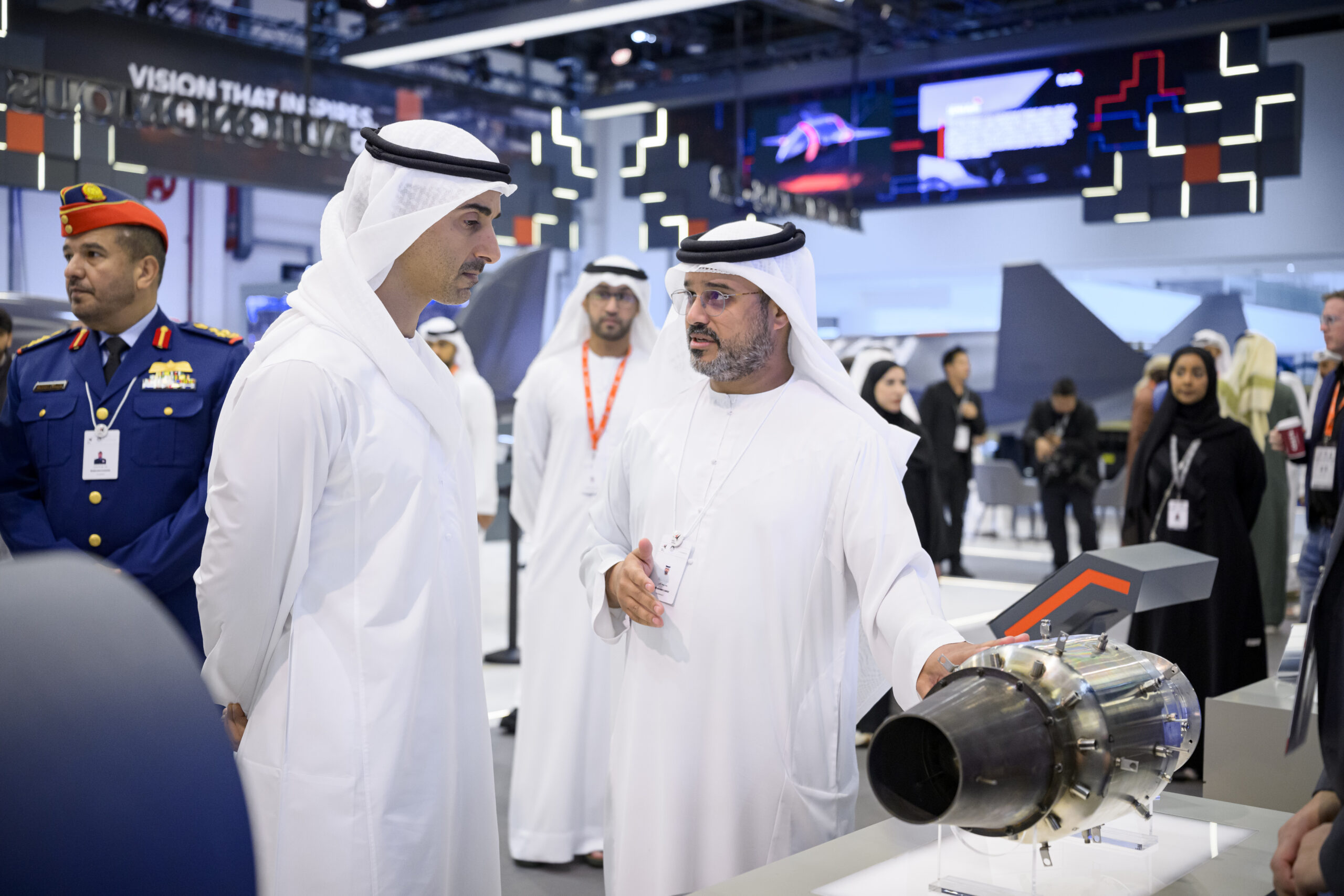H.H. Sheikh Hamdan bin Mohamed bin Zayed also visited several pavilions of leading companies specialising in the development of applied models in robotics, unmanned aerial vehicles, and smart operation solutions, in addition to solutions that leverage simulation and training systems to enhance operational efficiency and raise readiness levels across civilian, commercial, and defence sectors.