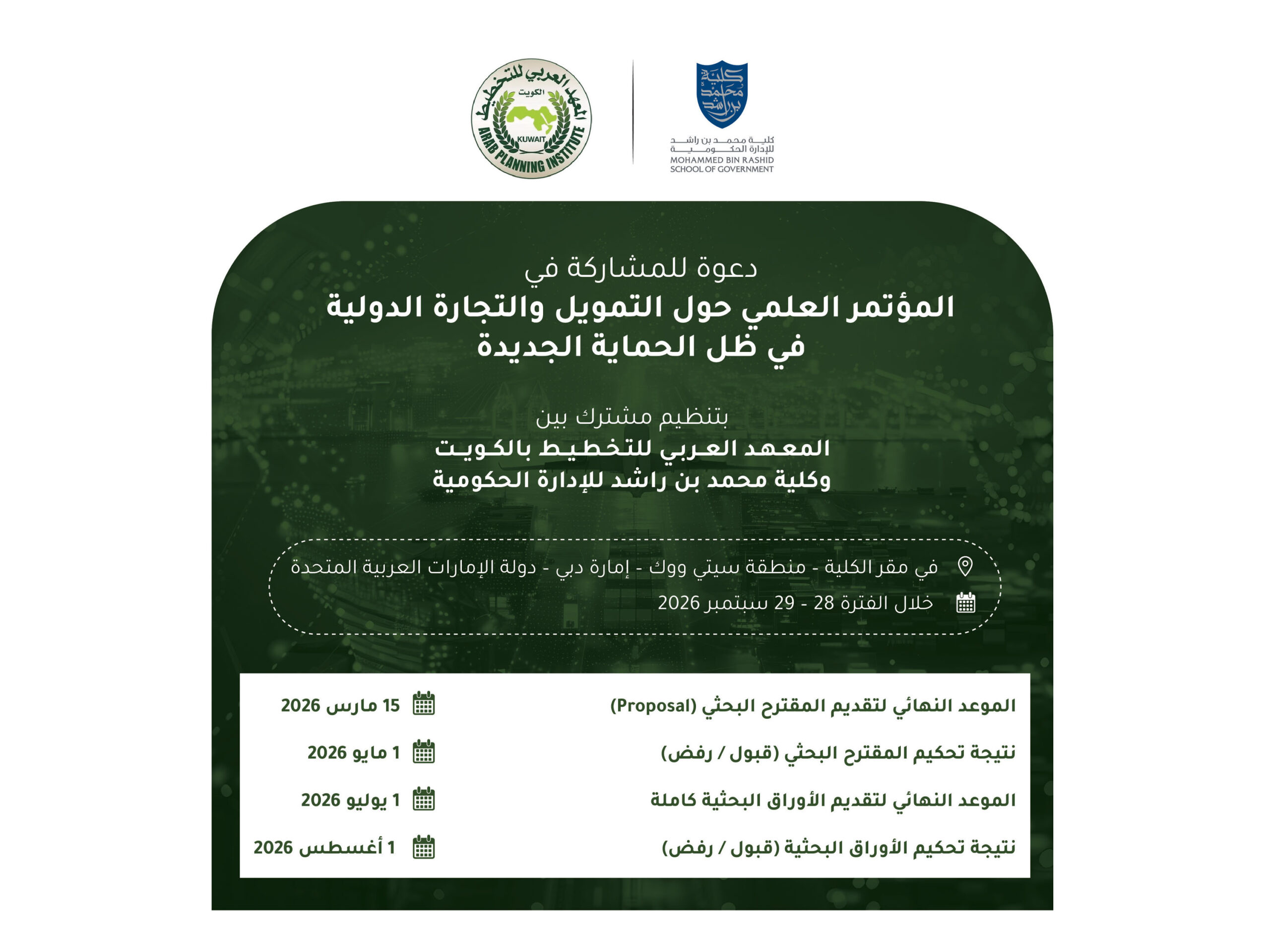 Organised in collaboration with the Arab Planning Institute (API) in Kuwait, the event will take place from 28th to 29th September 2026 at MBRSG’s headquarters in City Walk, Dubai, bringing together a select group of academics, experts, and policymakers from across the Arab region and beyond.