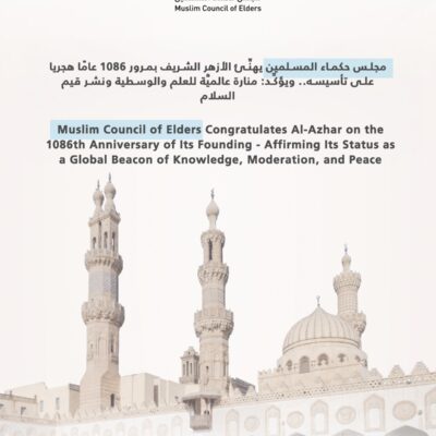 ABU DHABI, 24th February, 2026 (WAM) — The Muslim Council of Elders extends its sincere congratulations to His Eminence Professor Dr. Ahmed Al‑Tayeb, the Grand