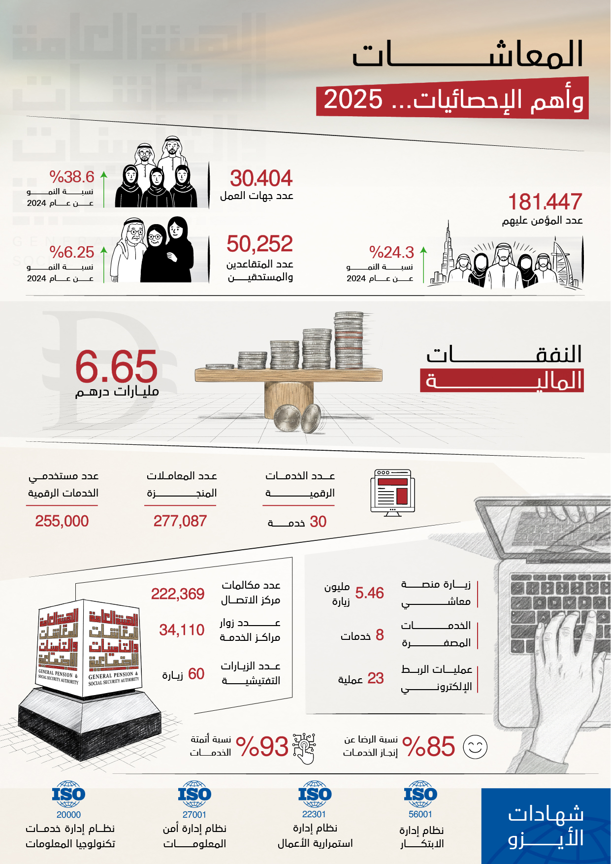 The Ma’ashi digital platform, launched in October 2024, offered 30 services and processed 277,087 transactions in 2025, with a 95 percent on-time completion rate. Digital users rose to 255,000, while visits to the platform reached 5.46 million by December 2025.