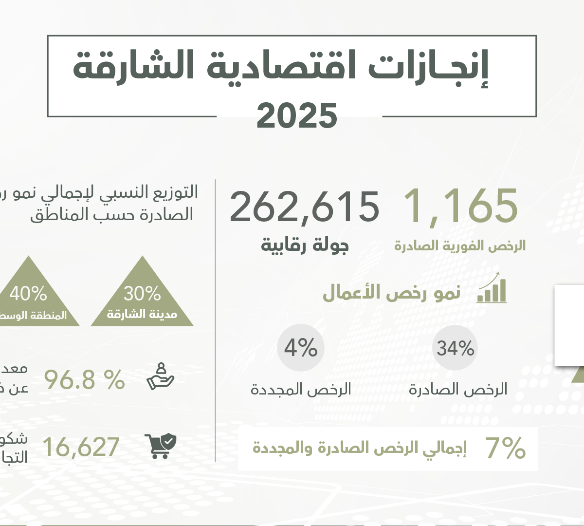 The Chairman of the Sharjah Economic Development Department confirmed that the department carried out 262,615 inspection visits during 2025. He noted that the department addressed 16,627 commercial protection complaints over the past year.