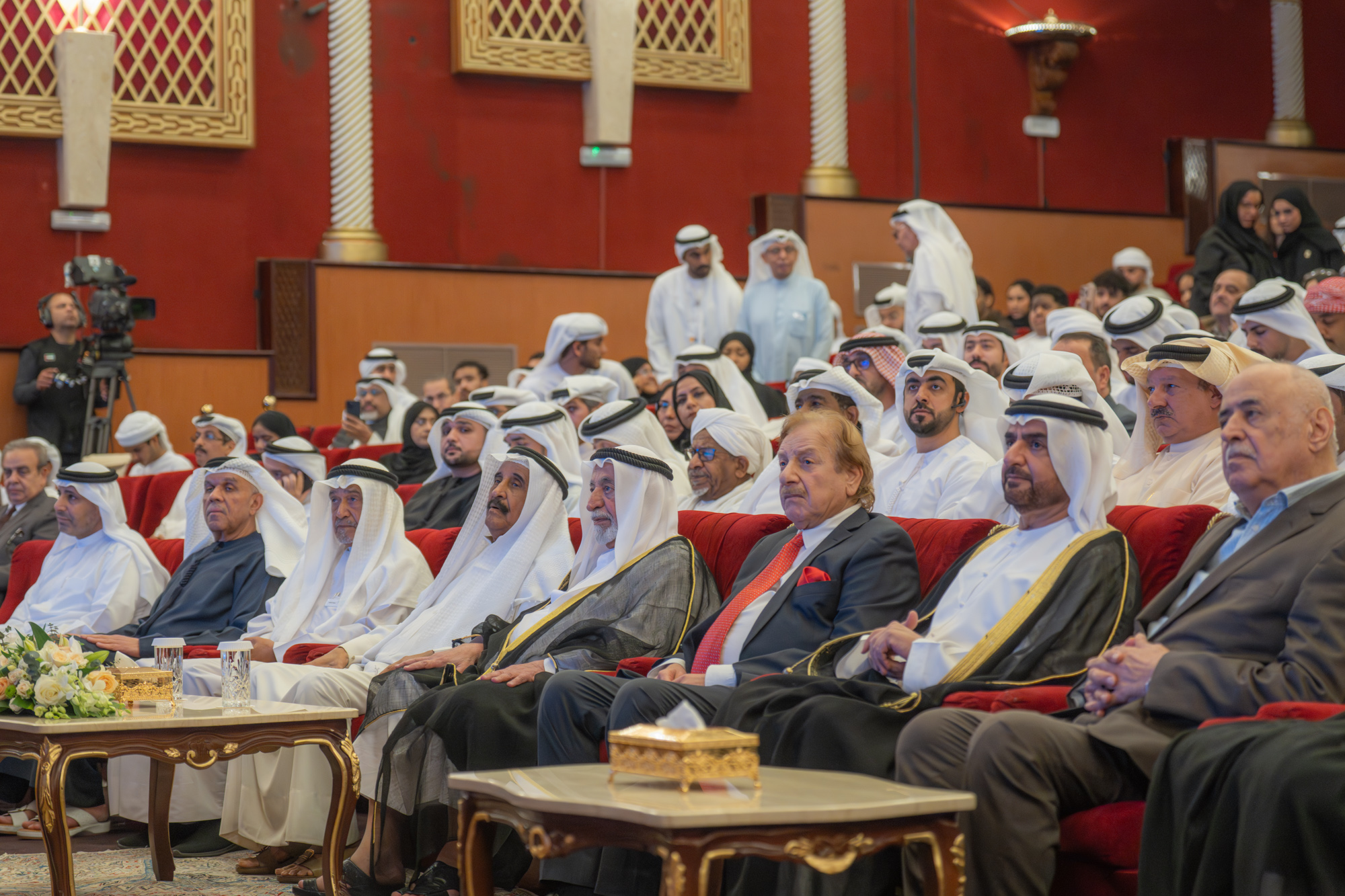 H.H. Sheikh Dr Sultan and the attendees viewed two visual presentations that showcased the biographies of esteemed artists, emphasising their lengthy careers and significant contributions to enriching and developing theatre. These presentations highlighted their pioneering works that left a distinct mark on the cultural and artistic scene, along with the most notable artistic milestones shaping their journeys. They also covered the influential roles they played on stage, as well as their efforts in supporting young talents and strengthening the position of Emirati theatre both locally and within the Arab world.