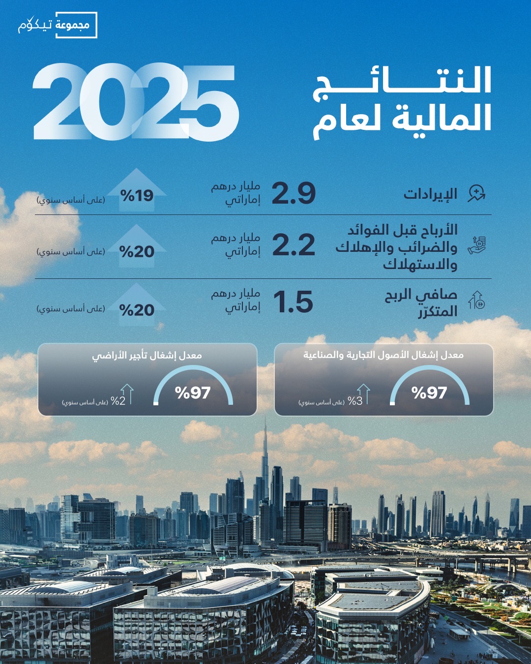 DUBAI, 3rd February, 2026 (WAM) — TECOM Group PJSC, the creator of specialised business districts and vibrant communities, has announced its financial results for the year ending 31st December 2025 (FY 2025), reporting strong year-end performance supported by sustained growth across its commercial, industrial and land portfolios.