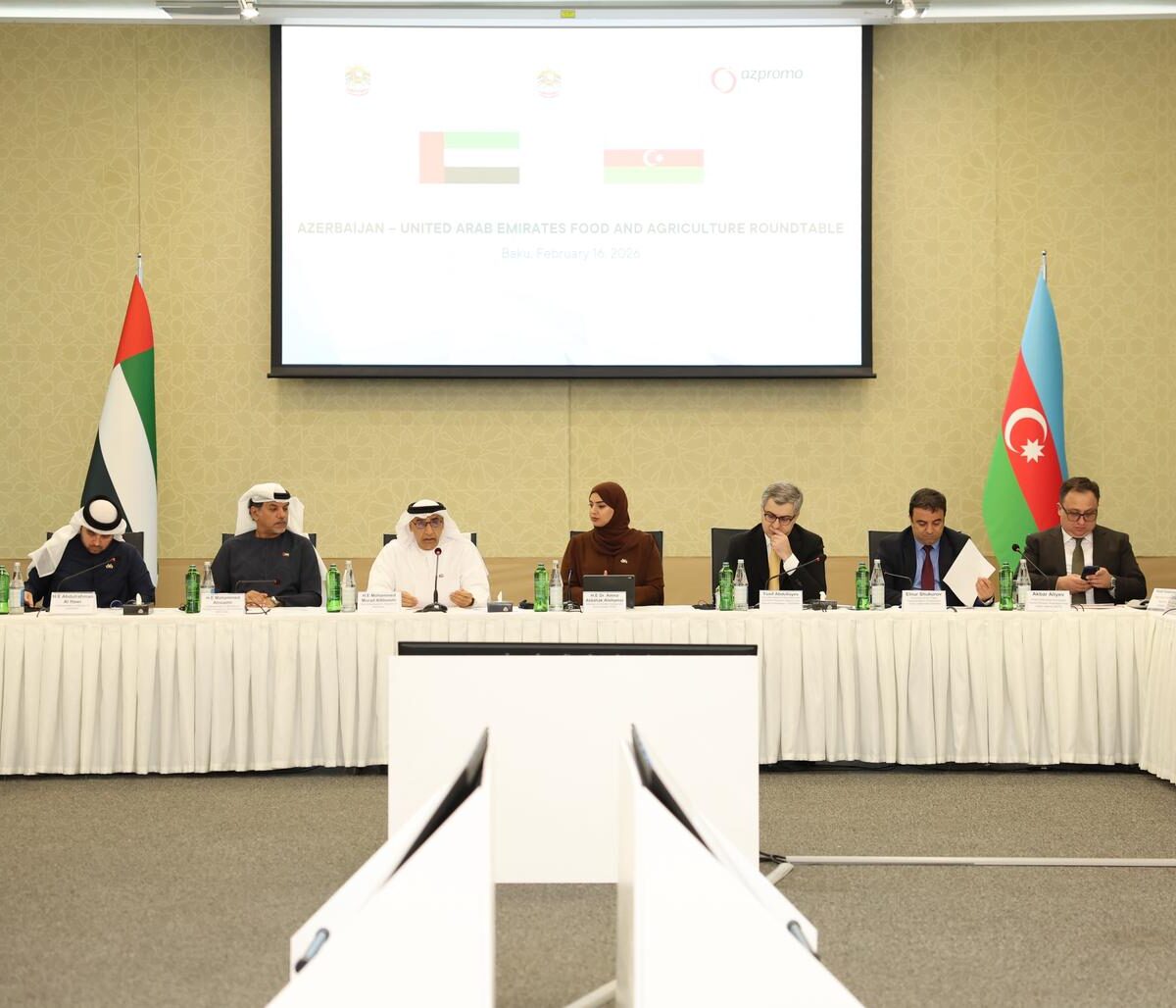 The session focused on expanding bilateral food trade by identifying strategic commodities, streamlining import/export processes for food and livestock, and exploring UAE investment in Azerbaijan’s agricultural infrastructure and land development.