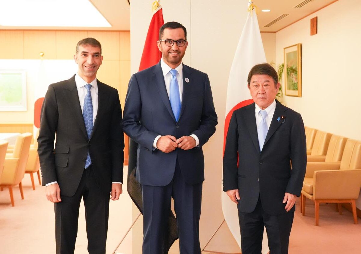 The announcement was made during the official visit to Japan by Dr. Sultan bin Ahmed Al Jaber, Minister of Industry and Advanced Technology and Envoy of the Minister of Foreign Affairs to Japan, accompanied by Dr. Thani bin Ahmed Al Zeyoudi, Minister of Foreign Trade, during a meeting with Toshimitsu Motegi, Japan’s Minister of Foreign Affairs.