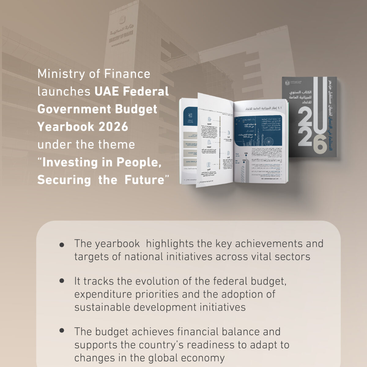 DUBAI, 13th March, 2026 (WAM) — The UAE Ministry of Finance (MoF) has launched the Federal Budget Yearbook 2026 under the theme ‘Investing in People, Securing the Future’.