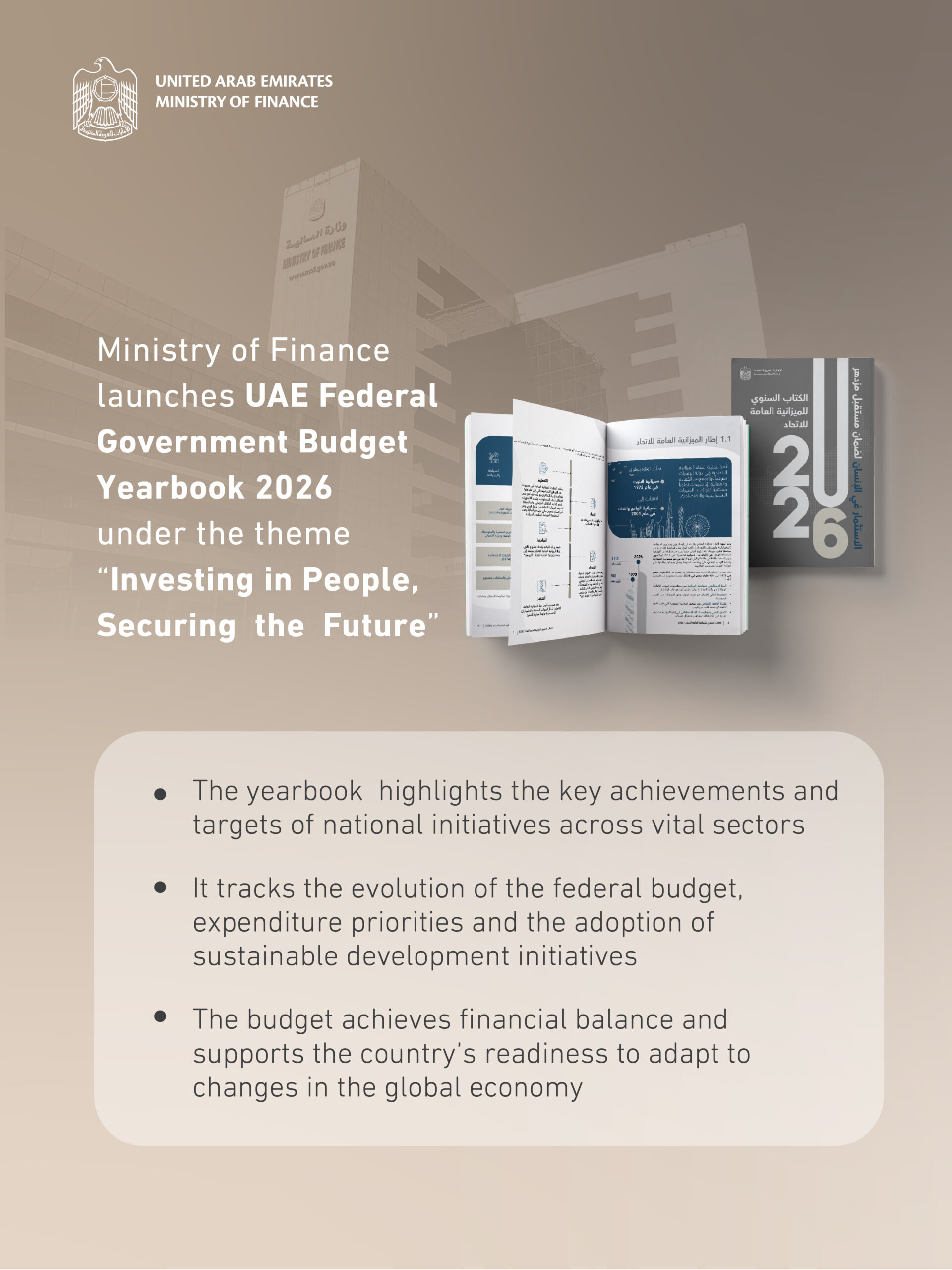 DUBAI, 13th March, 2026 (WAM) — The UAE Ministry of Finance (MoF) has launched the Federal Budget Yearbook 2026 under the theme ‘Investing in People, Securing the Future’.