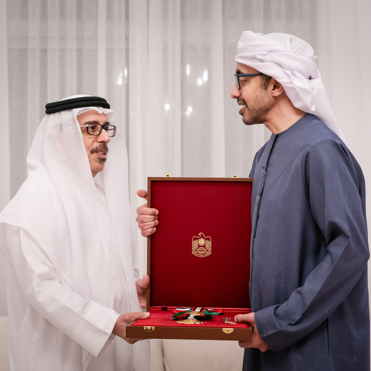 H.H. Sheikh Abdullah bin Zayed Al Nahyan, Deputy Prime Minister and Minister of Foreign Affairs, visited Mohammed Sultan Al Suwaidi at his home in Abu Dhabi and presented him with the award.