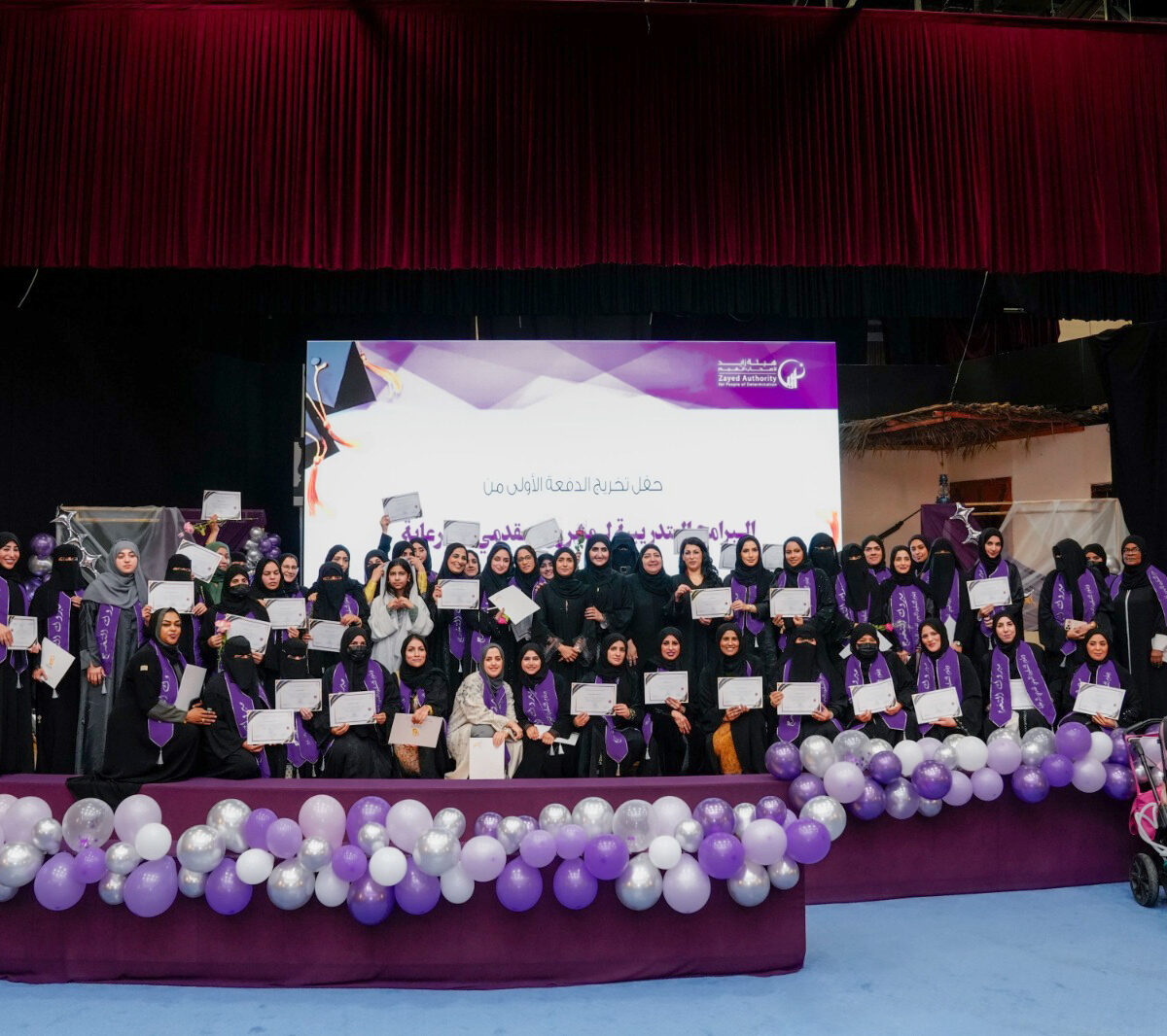 The ceremony was held at Ahmed Mangoush Theatre at the Authority’s headquarters, in the presence of senior officials, specialists, and the families of the graduates, reaffirming the Authority’s commitment to empowering families and enhancing their role as active partners in community support systems.